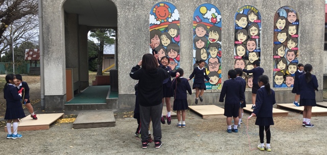 12月19日(火)に持久走大会を開催しました。以前お伝えしましたが、今日は、そのとき応援に来てくれた玉水保育園の園児を紹介します。例年応援に来たいただいているそうですが、玉水小の子ども達もかわいい応援で元気をもらいました。ありがとうございました。1枚は、12月21日学校に遊びに来ていた玉水保育園のふじ組さんです。写真は、保育士さんの許可をいただいて掲載しました。