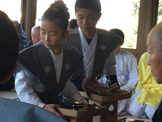 今日は、八社宮の例大祭をご報告します。八社宮は、学校の一番近くにある部田見神社のことです。部田見神社は、伊倉南八幡宮の分社で、部田見(上区、中区、小山区、久島区)を守っているお宮様です。毎年、12月13日に大祭が行われています。4年に一度、節頭区が回ってきて、お祓いの後、祝詞があげられ、子ども達の神楽が奉納されるそうです。今年は、部田見中が節頭区で、玉水小の児童も3名参加しました。