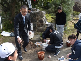 1月4日(木) 10:00から 平成21年度卒業生(22年3月卒業)によるタイムカプセル開封式が行われました。卒業生、担任、当時のPTA役員の方が、学校に集まり当時を懐かしんでおられました。タイムカプセルには、8年後の自分に宛てた手紙や、習字などの作品当時の事故紹介や目標を書いた掲示物などたくさんのものが入れてありました。写真はその様子です。