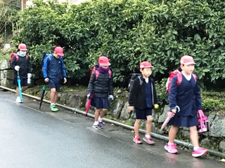 12月27日(水) 8:00~立花6班の子どもたちが、赤崎山の道路のゴミ拾いをしてくれていました。寒い中、白い息を吐きながら頑張っていました。ボランティアに取り組んでくれた子どもたちありがとうございました。あと、31日に部田見上3班の子どもたちが行います。ボランティア活動を2日間見て、とてもすばらしい取組ですが、今の方法で行うのは少し無理があるので、次年度へ向けて検討が必要だと感じました。