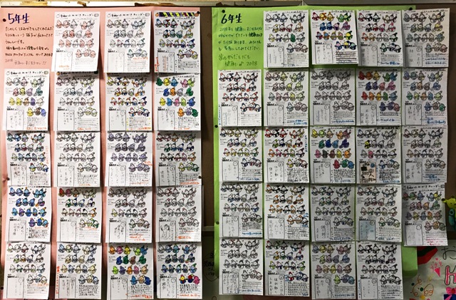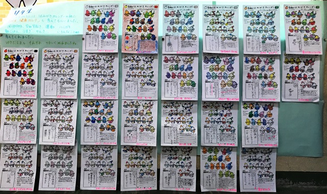 1月11日(木) 子どもたちが冬休みに取り組んだ歯磨きカレンダーが出そろいました。保護者の皆様のご協力ありがとうございました。今回4年生以上は、健康カルタ作りも一緒に行っています。学校においでの際は是非ご覧ください。