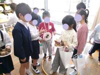 交流会では、魚つりゲームや的当てゲームを行ったり、お手製のマラカスで歌を披露したりしました。最後にメダルのプレゼントを渡すと、園児のみんなもにこにこ顔でとても嬉しそうでした。それにも負けないくらい、1年生も、園児のみんなが喜んでくれたので、大満足の笑顔でした。