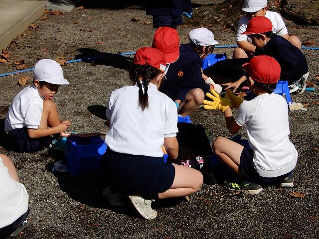 11月28日、1年生がチューリップやビオラなどを使って寄せ植えをしました。