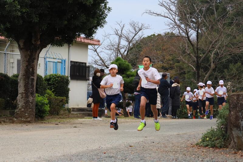 12月17日の持久走大会の後半では、4、5、6年生の子供たちが自分の目標達成をめざし走りました。。