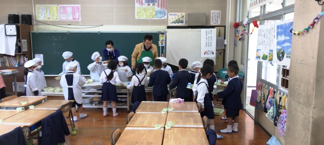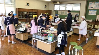 給食準備1年生