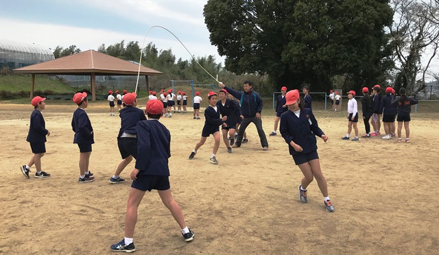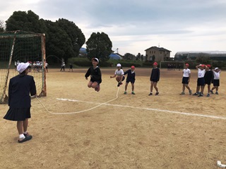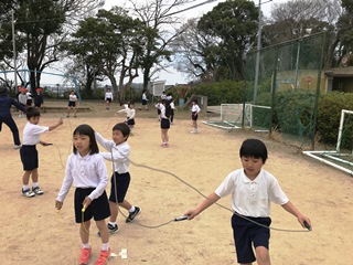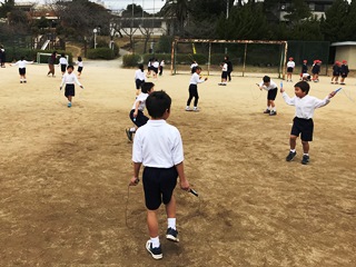 3月15日(木)今日の業間は、全校体育でした。各学年長縄を中心に学年ごとに取り組んでいました。