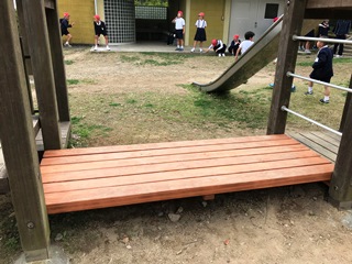 3月15日(木)ウッドステーションが腐食し、一部がしばらく使えませんでした。改修が終わりやっと使えるようになりました。以前から人気の遊具でしたが、より多くの子供達が遊んでいます。
