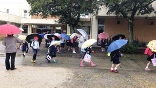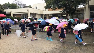 3月19日(月)今日は、雨の中の一斉下校でした。雨のときは、傘をさしているので、視界が悪くなります。事故のないように帰ってくれることをいつも願っています。