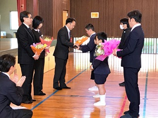 3月28日(水)今日は退任式でした。在校生と先日卒業した6年生も来てくれました。年度末の異動で4名が転出することになり安した。子供達の代表からとPTA会長さんより温かい励ましの言葉を頂き、大変ありがとうございました。
