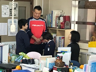 3月28日(水)退任式が終わった後、最後の別れに職員室に多くの子供達が来てくれました。別れは本当にさみしくなります。