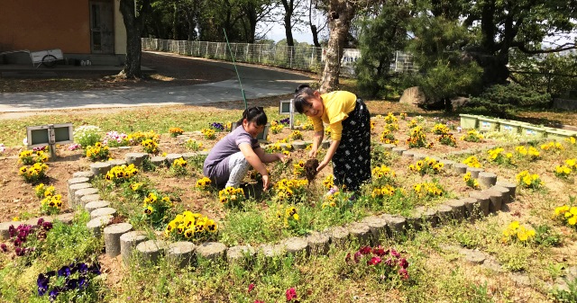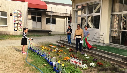 4月9日(月)午後、学校園の草取りをしていると、帰ってから遊びに来ていた2年生の女の子2人が、手伝ってくれました。おかげで、とてもきれいになりました。