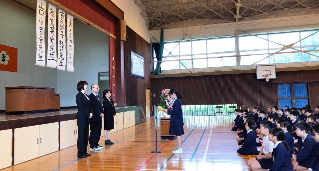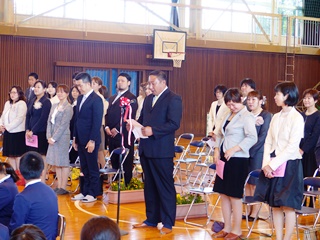 4月9日(月)今日は、就任式で3人の先生をお迎えしました。また、終業式で今年度どんな目標を持って臨むのか意識を高めました。
