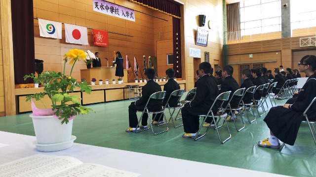 4月10日(火)午後、天水中学校のすばらしい入学式がありました。3月に卒業した子供達が、制服を着て、とても立派で少し大人びて見えました。中学校で活躍してくれることを祈念いたします。