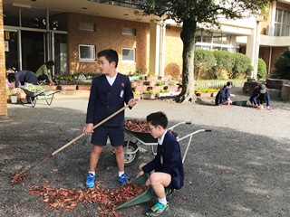 3月20日(火)今朝は連日の雨で、木の葉がたくさん散っていました。5年生の3人が自主的に葉っぱ集めをしてくれました。だれからの指示でもなく自分で考えて行動している姿に感心しました。