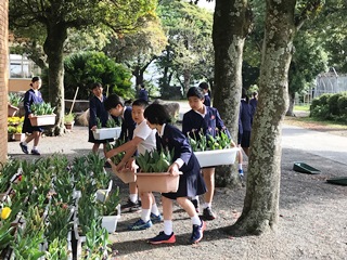 4月23日(月) 今日から家庭訪問が始まりました。担任の先生方が、家庭訪問を行っている間、他の職員で、資料室の片付けを行ったり学校園周辺や中庭等の草刈りを行いました。