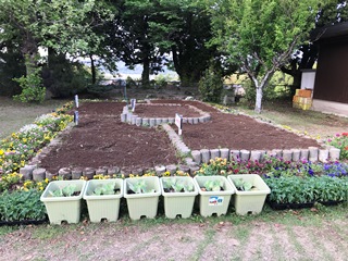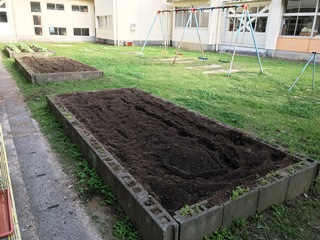 5月15日(火) 学級園を環境担当の福嶌先生に耕していただきました。きれいになりました。今から野菜や花が植えられます。生長が楽しみです。加えて、体育館裏の草刈りもしていただきました。