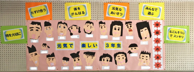 5月3日(木) 先日に続いて学級目標を紹介します。今日は、3年生と4年生です。子供達と担任の先生の思いが詰まったものです。学級でしっかり共有し達成を目指していきます。