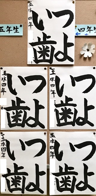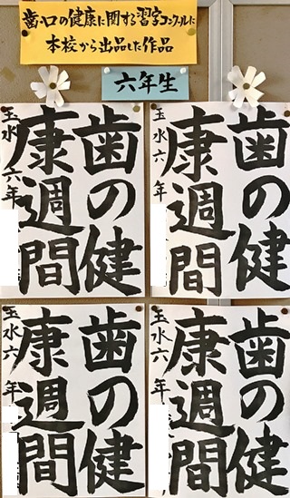 5月15日(火) 保健室前の掲示板に「歯の健康に関する習字コンクール」への応募作品が貼ってありました。みんな力強くすばらしい作品だったので紹介します。