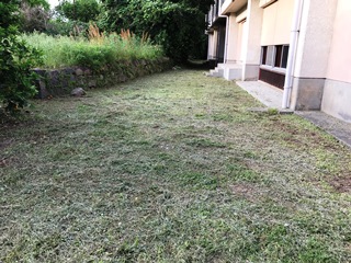 4月26日(木) 担任の先生方が家庭訪問をされている間に他の職員も頑張りました。室内の倉庫や資料室を片付ける者と運動場の草刈りをする者に分かれて行いました。写真は、運動場の周囲の様子です。