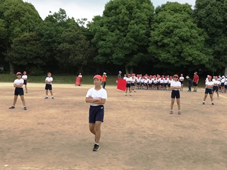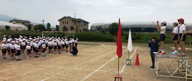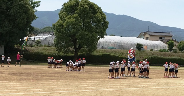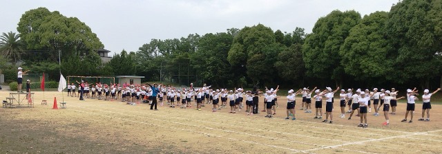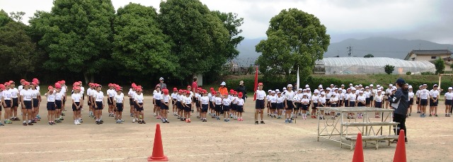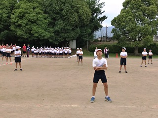 5月17日(木) 今日の3時間目は、運動会の全体練習2回目でした。注意点を確認しながら、開会式と閉会式の練習を行いました。