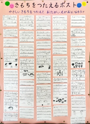 7月7日(金) 今日は二つの掲示物を紹介します。一つは、企画委員会が行った「気持ちを伝えるポスト」の取組です。子供達が生活の中で、うれしかったことやありがたいと思ったことに対して、友達に感謝の気持ちを伝え合うものです。直接渡しますが、その後、児童玄関に掲示してあります。いくつかは、放送でも紹介しました。もう一つは、「玉水ノート名人」のコーナーです。わかりやすくまとめている子供達のノートを掲示し、みんなで高め合う取組です。授業を見て回るときに、子供達のノートがきれいにまとめられているので、感心しているところです。