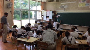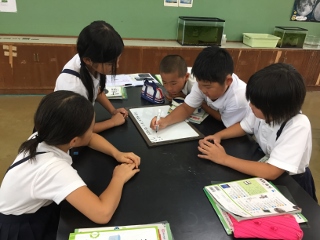 6月22日(木) 5校時に2年生国語「スイミー」の研究授業がありました。この授業は、玉名・荒尾の教育会の事業の一環で行われたものです。多くの先生方の参観の中で行われました。子ども達は、班での活動に一生懸命取り組んでいました。