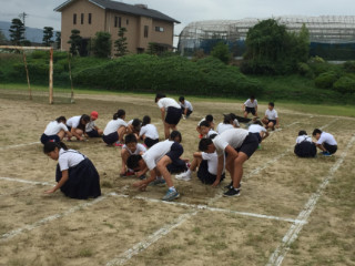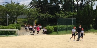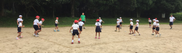 6月21日(木)全校体育がありました。子ども達は、学年毎に分かれそれぞれの課題克服のために取り組んでいました。写真は、1・2年生の様子です。