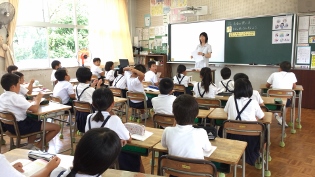6月19日(月) 1時間目 ICT機器が活用されていました。ICT機器の一番の目的は、焦点化です。1年生の国語では、教科書の部分を大きく見せて(焦点化)工夫を考えさせたり、音読をさせられていました。3年生国語では、「七夕」の学習で天の川を映し出して学習が進められていました。
