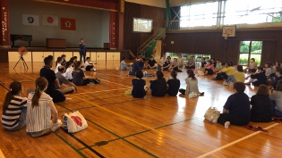 予定通りホテルに到着し、入館式の後、夕食です。写真は入館式の様子です。全員元気で活動できています。