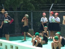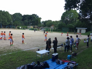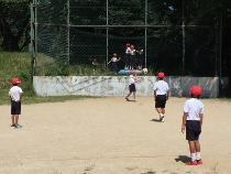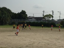 8月25日(金) 今日は、大会前最後の練習でした。下の写真は、6年生が見守る中、4年生5年生を2チームに分けてゲームをしているところです。