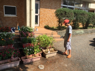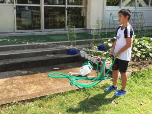 下段:3年理科、屋外でホウセンカの観察をしていました。