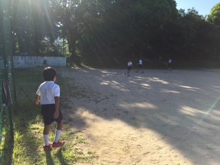 8月31日(木)朝の運動場です。朝といえども暑さをものともせず、子ども達は、運動場で遊んでいました。ドッヂボール、サッカー、キックベース、ウッドステーションの4つのグループができていました。子ども達は、とても楽しそうに遊んでいました。