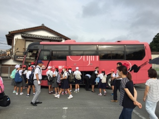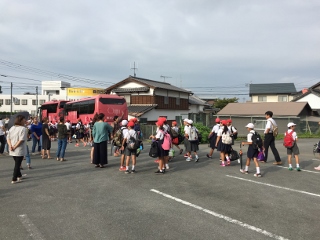 9月6日(水) 8:10みんな元気に修学旅行に出発しました。心配した天気も良くなり、子ども達は、自分で考え行動する修学旅行にしてくれると思います。
