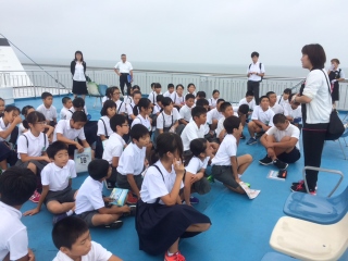 9月6日(水) 9時フェリーでの様子が送ってきました。子ども達は、無事フェリーに乗り込み、操舵室の見学をしています。