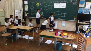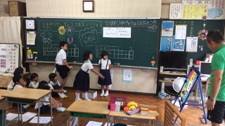 9月15日(金) 2校時 1年生算数「3つのかずのけいさん」の研究授業を行いました。子供たちは、学習態度、意欲申し分なく友達と対話をしながら学びを深めていました。今回は、小天小学校からも先生に参加していただきました。