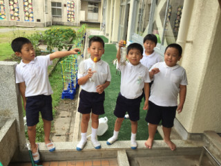 9月22日(金) 昼休み校舎を歩いていると子どもたちは、思い思いに過ごしていました。ヤモリを捕まえて生き生きとしている男の子、バッタを捕まえて楽しそうにしている女の子、部屋の中で、製作をしている女の子etc 写真はその様子です。