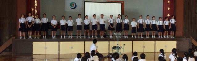 6月29日(木)2校時 校内童話発表会がありました。発表した6人は、学級代表らしく素晴らしい発表をしてくれました。発表を聞いていた子供達も、入場の態度、話の聞き方が、良くできていました。うなずいたり、真剣なまなざしなど、発表する子供達も話しやすかったと思います。童話発表会をきっかけに、本を読むことの楽しさに一人でも多く気づいてくれることを願います。※写真は、全員、4年橋本奈都さん、5年米野真央さん、6年永廣桃羽さんです。