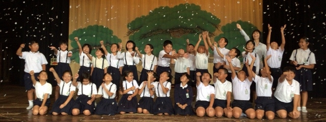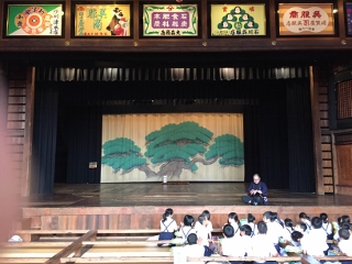 9月26日(火) 八千代座の舞台で記念撮影ができました。サプライズで桜吹雪を散らしていただきました。子ども達は、大喜びでした。山鹿灯籠保存会の方とも一緒に写真を撮ってもらいました。