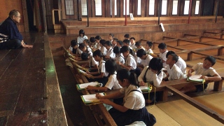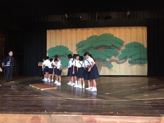 9月26日(火) 4年生の見学旅行でした。山鹿市の八千代座と菊池市の竜門ダムを見学して学んできました。子ども達は、バスの中ではとても元気よく、車から降りて整列するとき、見学の説明を聞くとき、素晴らしい態度で活動することができました。八千代座では、仕掛けの体験もさせてもらい、地下に入って回り舞台を回すことができました。サプライズで、山鹿灯籠の保存会の方の山鹿灯籠踊りも見ることができ、ステージに上がっての記念撮影もできました。107年の歴史ある八千代座、それを地域の人たちが、熱心に保存運動に取り組み、国の重要文化財と認定されるまでを学ぶことができました。