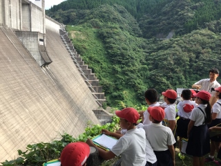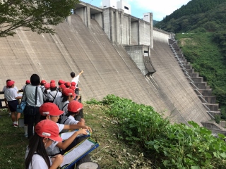 9月26日(火) 午後は、竜門ダムでした。竜門ダムでは、まずお弁当を食べました。そして見学です。とても詳しい説明があり、ダムの仕組みと役割を動画や装置などを見せてもらいながら学ぶことができました。500段近くの階段を上り下りし、見学をしました。話を聞く姿勢、終わった後の質問など良い態度で見学ができました。