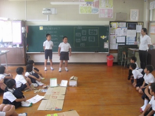 6月27日(火)1校時 5年算数「同じものに目をつけて」の学習が行われていました。内容は、5年生と一緒です。補助の黒板を活用して工夫されていました。