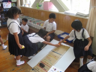 6月9日(金)3時間目 4年生国語「新聞を作ろう」の1場面です。子ども達は、自然な形で対話ができていました。身を乗り出して、資料を指し示したり、自分の意見を述べたり活発な活動が行われていました。次期学習指導要領で示されている「主体的、対話的で深い学び」につながる姿の一つではないかと思います。