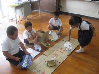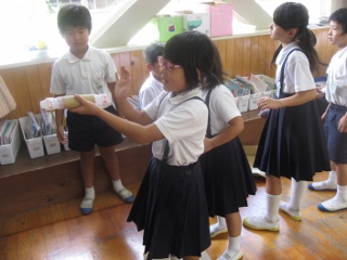 9月26日(火) 3校時は、2年生が生活科「うごくうごくわたしのおもちゃ」で、1年生を招待して、「おもちゃ大会」をしました。ルールや遊び方を一年生に伝えて、一緒に楽しく遊びました。1年生が楽しく遊んでいるのを見て、達成感を感じてくれたと思います。