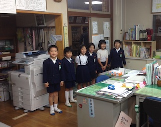 4〜6年生は北坂の下と児童昇降口にの二カ所に分かれて元気な挨拶をしてくれています。