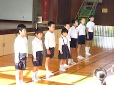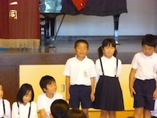 月曜日の児童集会では1年生の可愛い声での発表でした。