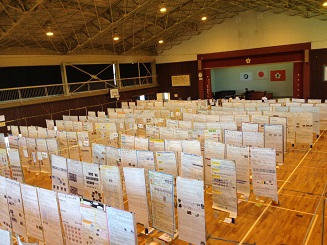 理科の科学展審査が玉水小学校の体育館で行われました。子ども達が夏休みの自由研究でまとめたもの中から学校代表に選ばれた作品が審査されました。