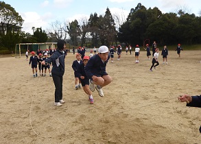 子ども達が、後ろとび、前駆け足とび、前あやとび、前交差とび、前二段とび、後ろあやとびなどの様々な跳び方にチャレンジしました。