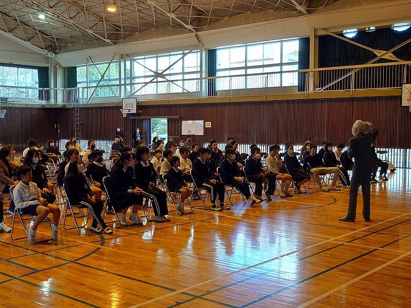 集会に先立ち、能登半島地震で亡くなられた方のご冥福を祈り、全校で黙祷をしました。