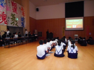 10月26日(木) 14:00~天水中学校の体験入学がありました。今年度が初の試みです。まず、学校概要の説明があり、次に英語と音楽の授業を体験しました。そして、生徒会執行部が学校紹介をし、最後に6人組のグループに中学生が一人ずつ入り、小学生からの質問に答えてくれました。とても盛り上がったそうです。子ども達も天水中学校のことがよく分かったと思います。