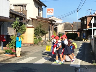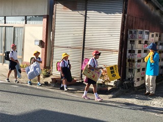 8月27日(月)の北坂下の登校の様子です。朝晩が少し過ごしやすくなったとはいえ、まだまだ暑いです。額に汗を光らせて頑張って登校していました。